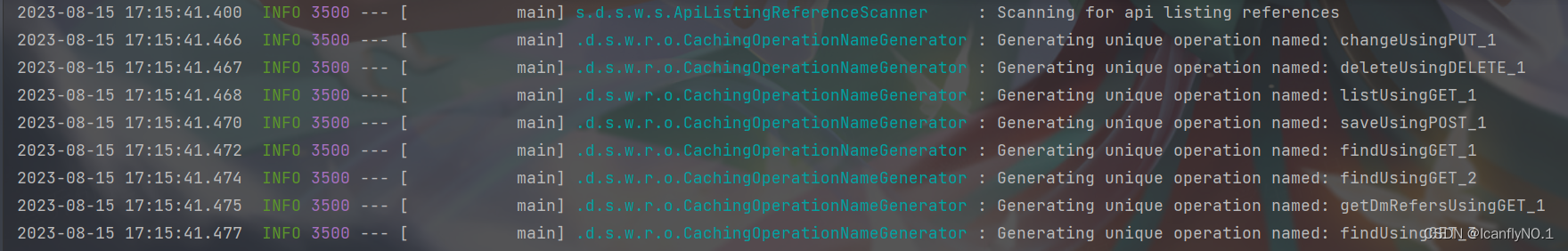 使用swagger,启动项目打印类似如下信息: Generating unique operation named: changeUsingPUT_1。原因: spring 在加载controller 的时候,发现这些类里面的方法名称有重复的,所以给你自动生成了一些名称,用以区分这些重复的方法。2.修改日志级别:DEBUG < INFO < WARN < ERROR,使用warn及以上日志级别即可