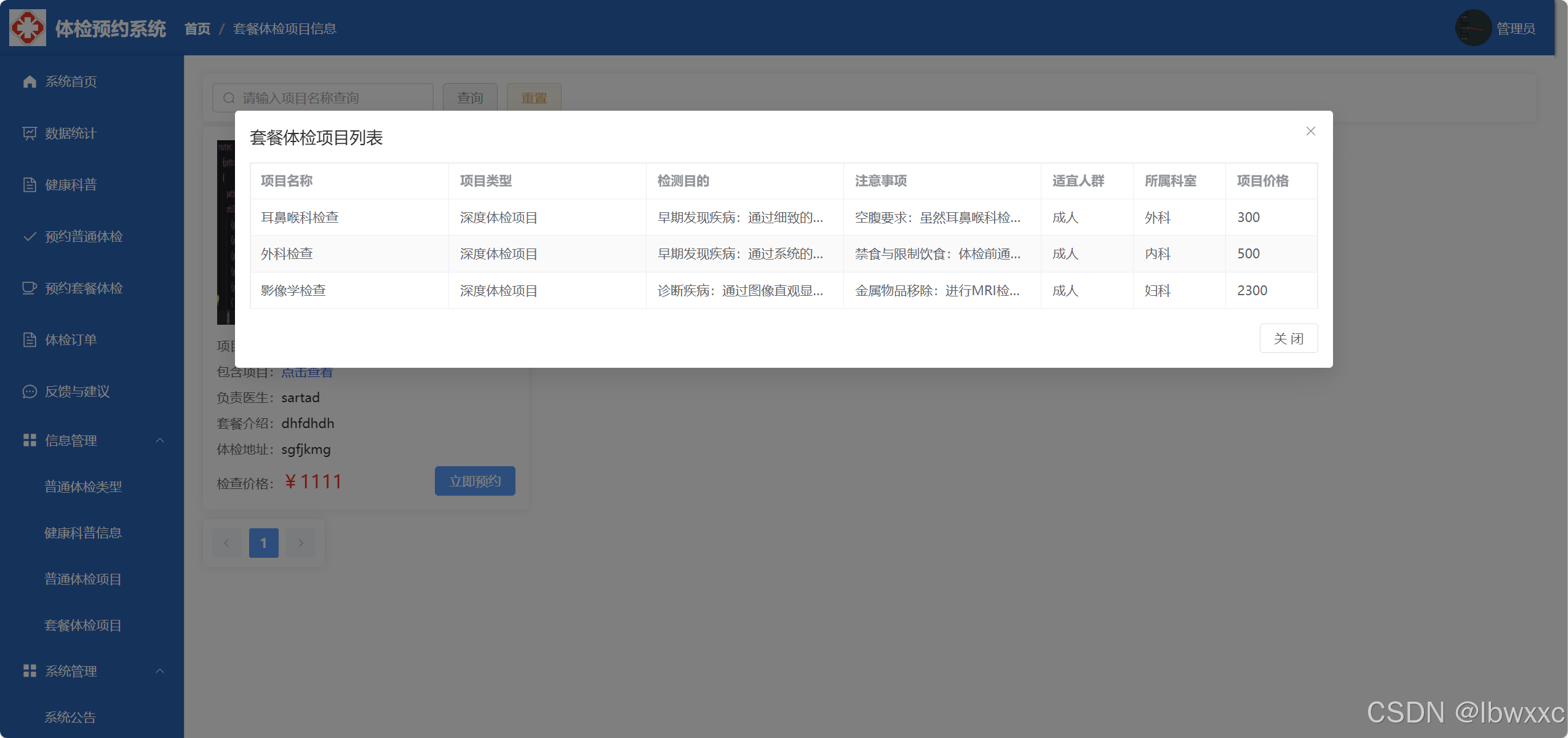 登录注册,修改密码,单项目体检预约,套餐式体检预约,数据统计