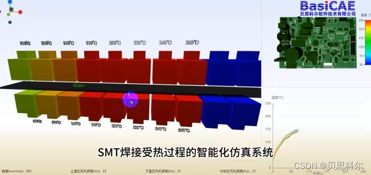 SMT焊接温度曲线智能仿真系统是一个全流程模拟PCB SMT焊接受热过程的智能化仿真系统。系统通过虚拟化构建数字化PCBA模型、回流炉模型,关联锡膏、器件、产品的工艺要求,通过热仿真软件来实现焊点温度曲线信息的获取,以此建立科学的回流焊工艺参数设定方法。SMT工程师可以通过该自动化热仿真分析平台实现炉温曲线加载、分析模型自动处理、工艺焊接模拟分析、优化,以提升炉温调试效率,提高SMT焊接工艺研究水