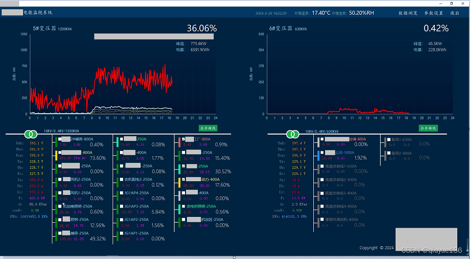 根据开发需求,需要对一套工厂供配电系统电能数据进行采集,现场实际情况及数采系统要求如下:1、该系统由两台变压器(10kv/0.4kv)组成,次级有30多条回路,即30多块多功能电能表(485端口)。2、数采系统要求5分钟采集一次即时值,其中变压器需要采集线电压/相电压/相电流/功率因数/有功功率/无功功率/有功电能/无功电能,各支路只采集线电压/相电流/有功电能即可。