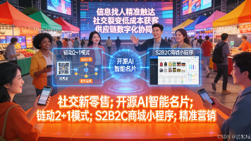摘要:社交新零售融合线上线下渠道,通过社交网络重构零售生态。开源AI智能名片链动2+1模式商城小程序作为创新方案,整合智能名片、裂变营销和S2B2C平台优势,实现精准营销与社交裂变。该模式显著降低获客成本,提升用户体验,为传统零售转型提供新路径。未来随着5G等技术发展,该模式将持续进化,推动零售业数字化转型。