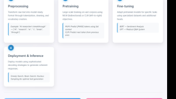 这篇文章详细介绍了大语言模型(LLM)的四阶段建模流程:预处理阶段通过文本分词和数据清洗为模型奠定基础;预训练阶段通过MLM或CLM目标让模型掌握通用语言能力;微调阶段让模型专精特定任务;部署与推理阶段实现模型落地价值。文章还对比了BERT类理解型模型和GPT类生成型模型的特点与适用场景,强调了根据任务需求选择合适模型的重要性。