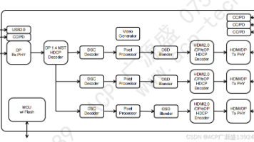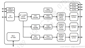 GSV2221G是一款多功能视频转换芯片,支持USB Type-C Alternate Mode下的DP1.4 MST转HDMI2.0/DP/eDP信号转换。其核心优势包括:集成DSC解码器、OSD叠加器、MCU及USB PD3.0控制器;支持4K@60Hz+HDR+HDCP;兼容多接口标准(DP1.4a/HDMI2.0b/eDP)。主要应用于Type-C扩展坞、转接器、DP-HDMI线缆、视频会