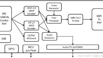 GSV1127是一款高性能混合信号转换器,支持Type-C/DP/HDMI到MIPI CSI-2的转换,具有以下特点: 多接口兼容:支持DP1.2、HDMI1.4和Type-C DP Alt-Mode输入 高集成度:内置MCU、视频/音频处理模块和HDCP1.4加密 低功耗设计:采用QFN64小型封装,适合嵌入式应用 丰富功能:支持4K到2K下采样、色彩空间转换和音频提取 应用场景:广泛应用于车载