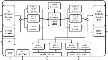 Gscoolink GSV5600 是一款高性能、低功耗的音视频信号延长器芯片,支持DisplayPort 1.4和HDMI 2.1标准,可通过多种介质(双绞线、光纤、同轴电缆等)实现信号延长。该芯片采用QFN88封装,集成增强型微控制器,支持最高8K@60Hz视频传输,具备HDR转换、色彩空间转换等视频处理功能,并集成HDCP内容保护。其Serdes延长技术可适配不同传输介质,同时支持双向红外、