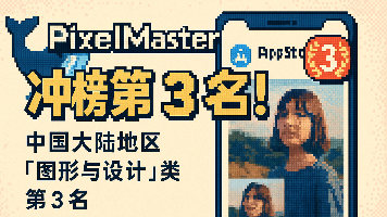 7 月,一个令人振奋的消息传来:我们开发的像素艺术应用 《PixelMaster》,成功冲上了 中国大陆 App Store「图形与设计」类别的第 3 名!这是我们第一次进入 App Store 榜单前三,对于一个由独立开发者打造的小众工具来说,这一刻无疑令人兴奋,也充满意义。