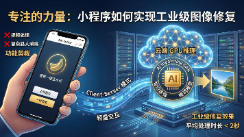 作为一名独立开发者,在构建图像处理应用时,往往面临着“既要又要”的诱惑:既想做视频处理,又想做图像修复,还想做风格迁移。然而,资源是有限的,算力是昂贵的。本文将以**“香蕉一键去水印”**这款小程序为例,从技术架构的角度探讨:如何通过严格的“功能剪裁”和“算法优化”,在微信小程序这一轻量级载体上实现工业级的图像修复效果
