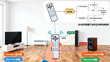 命令模式将请求封装为对象,使请求参数化、队列化或日志化。示例中,Robot和Weapon类作为接收者执行实际功能,而Command接口及其实现类(如TransToCarCommand、FireBulletCommand)封装了具体命令和附加逻辑。CommandInvoker作为调用者管理命令队列,支持批量执行。该模式解耦了请求者与接收者,支持命令的延迟执行、日志记录和参数化,避免了switch-c