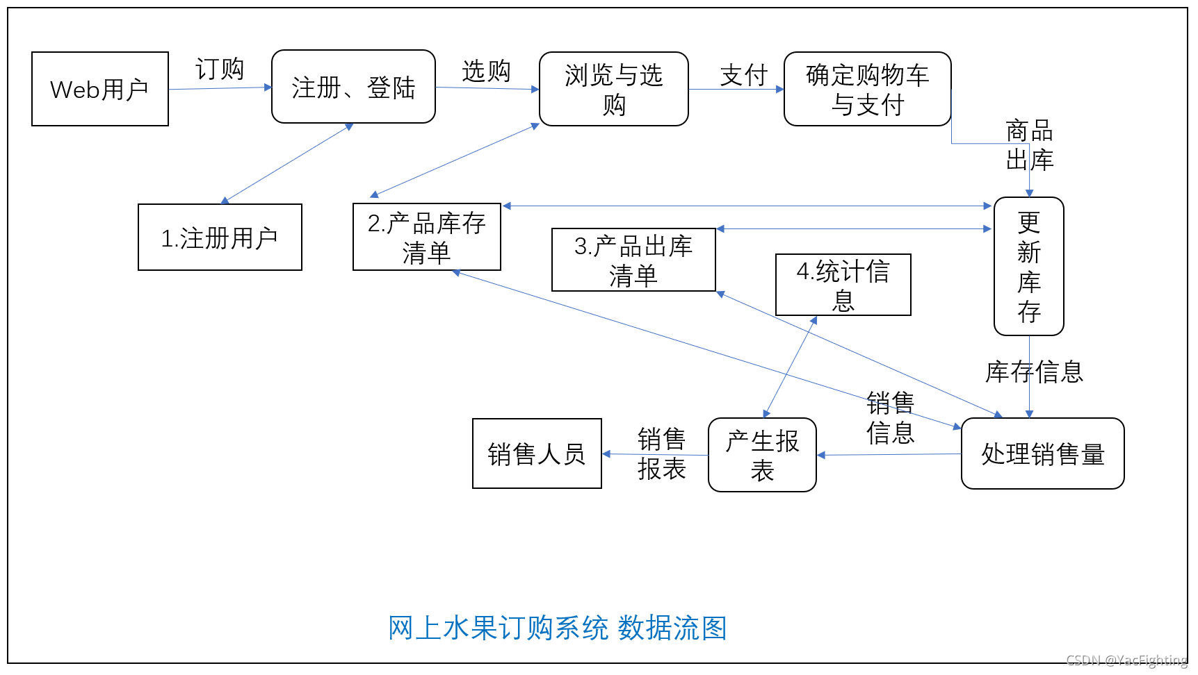 实验一 结构化分析与设计——过程与工具1、实验目的(1)熟悉结构化分析与设计方法。(2)掌握用软件绘制常用图表的基本操作。2、实验内容(第1、2题为必做题,第3题为选做题)(1)阅读教材“10.3 Web商品进销存信息系统”和“10.4 Web图书商城信息系统开发”,学习和体会系统的结构化分析与设计过程,进一步理解结构化分析与设计的方法和工具的使用。深入体会数据流图、数据字典、业务流程图、E-R图