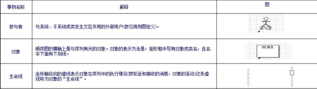 (1)前面交互图实例中的框图——生命线(lifeline)框图,表示的是交互的参与者(participant),注:生命线框图并不等同于类的实例。(1)交互具体值(interaction occurrence)/交互使用(interaction use):是在交互中引用另一交互。(1)创始消息found message:最开始的消息,在图中表示为实心圆作为起点。(1)主动对象即在其自己的执行线程中