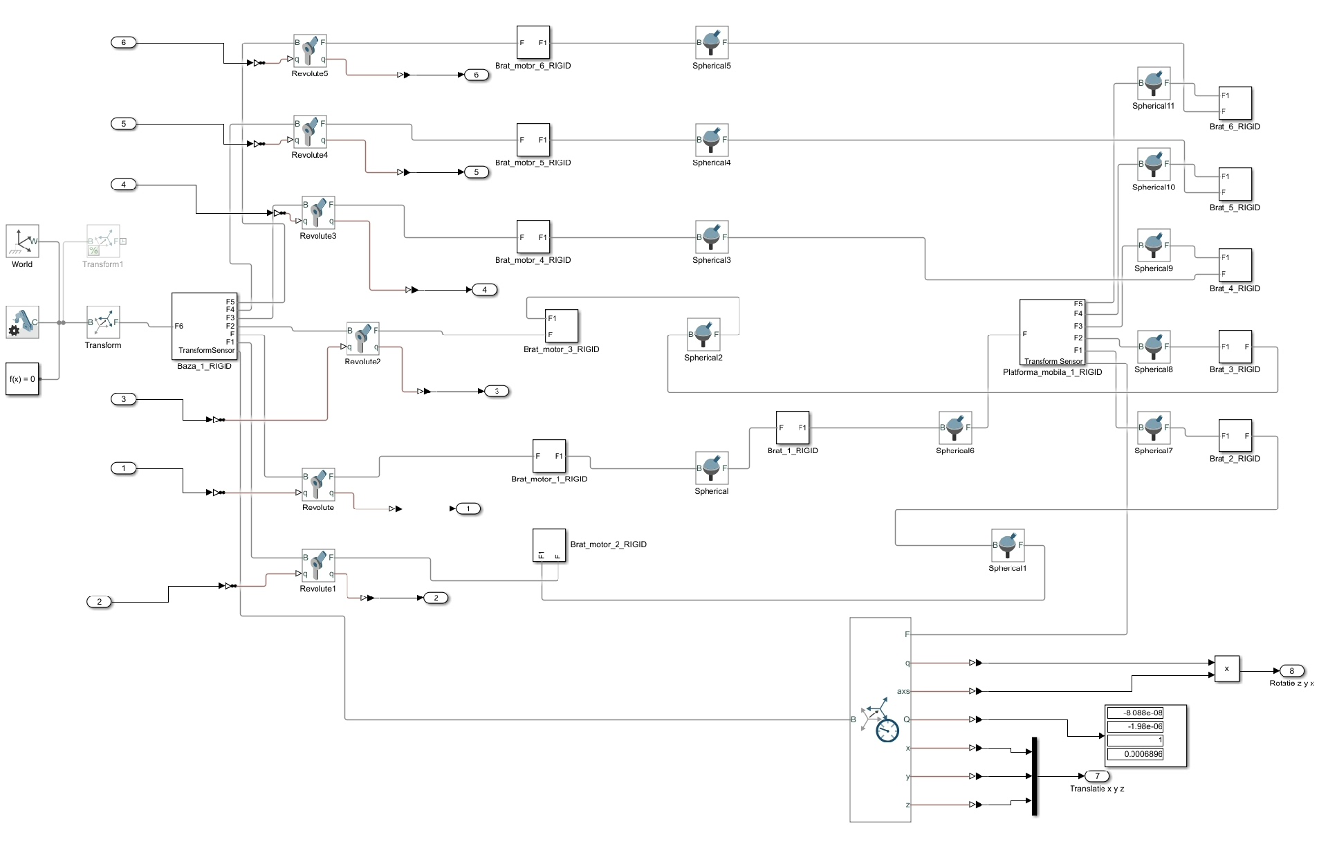 斯图尔特机器人Stewart平台 并联机构仿真 逆向运动学 simulink simscape①首先在Solidworks中设计并导入 Matlab Simscape Multibody;②设计控制算法并在Simscape进行验证;③附带嵌入式代码:采用Arduino Uno、6 个步进电机和 3 个电感传感器完成。Simscape Multibody 模拟 6 个基本运动:X 轴平移、Y 轴平移