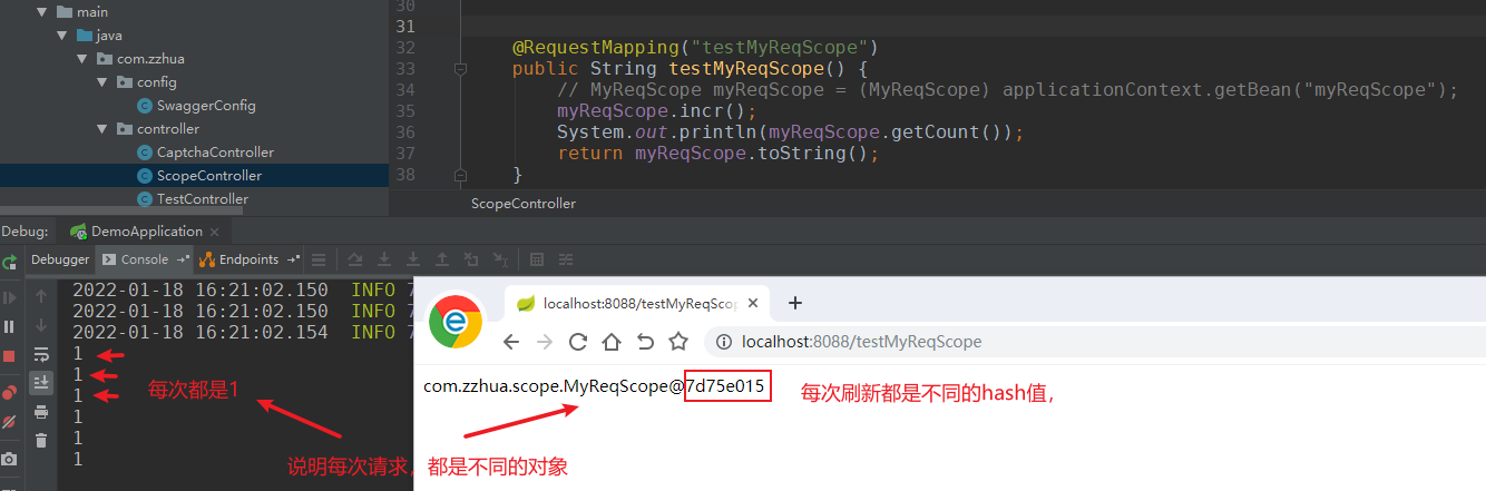 Scope域@Scope("prototype")//多实例,IOC容器启动创建的时候,并不会创建对象放在容器在容器当中,当你需要的时候,需要从容器当中取该对象的时候,就会创建。@Scope("singleton")//单实例 IOC容器启动的时候就会调用方法创建对象,以后每次获取都是从容器当中拿同一个对象(map当中)。@Scope("request")//同一个请求创建一个实例@Scope("