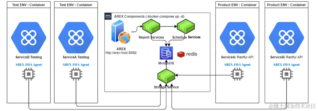 Java Agent 技术与比对技术,通过流量录制回放能力实现快速有效的回归测试。同时提供了接口测试、接口比对测试等丰富的自动化测试功能,无需编程能力也可快速上手。在使用 AREX 流量录制功能时,AREX Java Agent 会记录生产环境中 Java 应用的数据流量和请求信息,并将这些信息发送给 AREX 数据存取服务(Storage Service),由数据存取服务导入 Mongodb 数