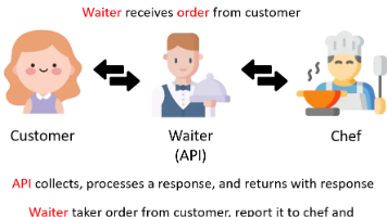 API 是“应用程序编程接口”的缩写,是一种允许不同应用程序之间相互通信和交换数据的接口。就好像在餐厅点餐一样,你只需要告诉服务员你想要的食物,而不需要了解厨房中的具体操作,服务员会把你的订单传递给厨房,然后将厨师烹饪好的食物提供给你。在这个过程中,服务员扮演的就是一个 API 的角色。同样地,当你使用 API 时,你只需要调用所需的功能和服务,而不需要了解底层的代码实现。因此,API 就像是应用
