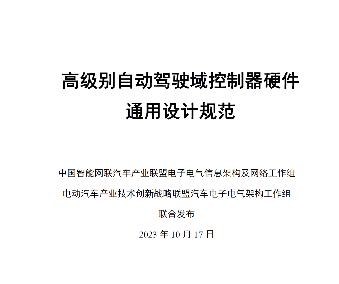 随着汽车智能化、网联化技术快速发展,研制满足高级别自动驾驶的高算力、高能效比以及具备高功能安全等级要求的自动驾驶域控制器成为行业争相攻克的前沿核心技术之一。为进一步探究技术路径与开发思路,电动汽车产业技术创新战略联盟汽车电子电气架构工作组和中国智能网联汽车产业创新联盟共同发起《高级别自动驾驶域控制器硬件通用设计规范》研究工作,在国家智能网联汽车创新中心、中国第一汽车股份有限公司、德赛西威汽车电子股