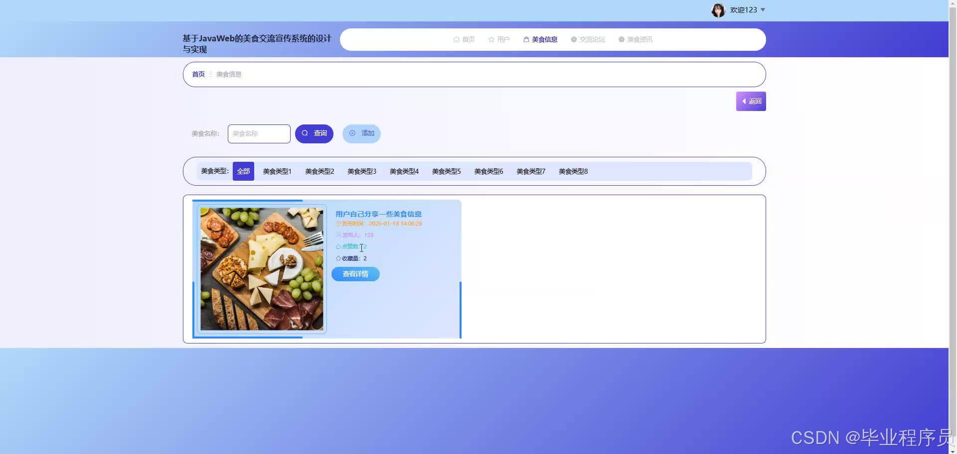 开源免费分享校园周边美食探索及分享平台信息管理系统源码-SpringBoot后端+Vue前端+MySQL【可直接运行】可提供说明文档 可以通过*AIGC**技术包括:MySQL、VueJS、ElementUI、(Python或者Java或者.NET)等等*功能如图所示。可以滴我获取详细的视频介绍