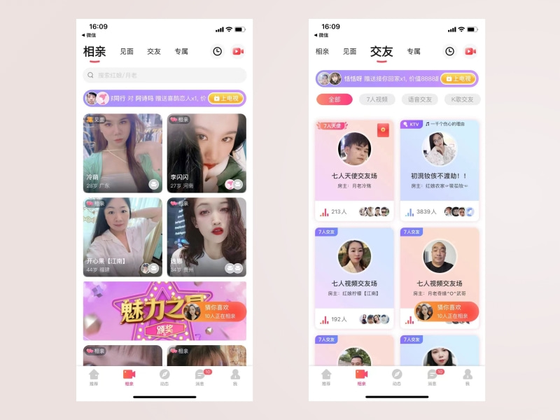 丰富的经验、成熟的技术,打造适合当下市场发展的语音交友软件源码,除了语音社交app源码外,公司还提供直播系统、短视频系统、一对一直播系统、游戏陪玩系统、相亲交友系统等源码开发服务。在语音交友软件源码中,支持用户赠送礼物,礼物种类比较多,不同的礼物展现效果不同,在派对群聊功能中用户既可以全麦赠送,也能选择喜欢的上麦者赠送。1、语音交友软件源码既然具备强大的社交属性,自然可以用于语音社交、婚恋相亲。2