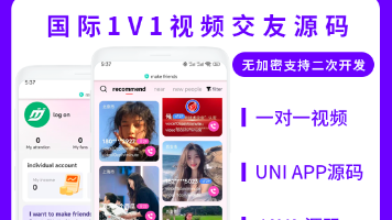 该软件是一款支持多国语言的1v1聊天交友app,参考了市面上常见的一些交友APP开发的,目前开源的是第一版的模板。前端是基于uniapp+tim+trtc 后端是java+mybatis plus+element ui可用于交友APP,聊天交友,视频交友,语音交友,直播交友,同城交友,一对一交友,一对一视频聊天,1v1同城交友,1v1交友,付费交友,相亲交友,陌生人交友等等,支持定制,有需求的可联