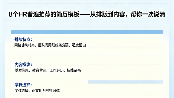 HR认可的简历模板核心标准是格式规范、关键词清晰、ATS系统兼容。文章推荐8款主流简历工具:1)100分简历:AI驱动,60款通用+3000+岗位模板;2)超级简历:15+行业覆盖,ATS适配;3)知页简历:500强HR参与设计;4)锤子简历:千套HR验证模板;5)职徒简历:200+因子AI诊断;6)Zety:实时语法修正;7)Kickresume:GPT-4技术生成内容;8)Canva:创意设计
