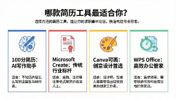 求职工具推荐:4款高效简历制作平台对比 本文推荐4款专业简历制作工具,满足不同求职需求:1)100分简历-提供3000+细分岗位模板和AI写作辅助,适合应届生和转行者;2)MicrosoftCreate-规范格式且与LinkedIn无缝衔接,适合传统行业求职;3)Canva可画-强大视觉设计功能,适合创意工作者;4)WPSOffice-本地化服务优秀,支持PDF直接编辑。各平台在岗位适配性、格式兼