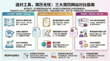 本文推荐了三款专业的简历制作网站,帮助求职者解决简历撰写难题。100分简历提供3000+真实案例和AI辅助功能;超级简历(WonderCV)以专业简洁风格著称,适合外企求职;职徒简历则专注于跨行业求职指导。文章对比了三者的特色功能,并解答了关于ATS系统、简历格式等常见问题,建议求职者参考案例但不要照抄,优先选择PDF格式投递简历。