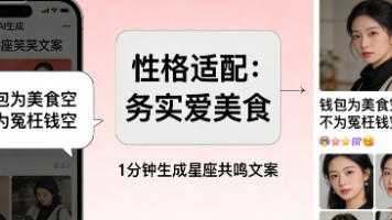 AI赋能星座文化新玩法,让星座爱好者轻松解锁创意表达。通过AI工具可一键生成星座专属文案、设计周边产品、策划社交内容,无需专业技能也能打造个性化星座作品。例如,输入星座类型和风格需求,AI可生成精准匹配星座性格的搞笑文案或治愈祝福;选择周边类型和风格偏好,AI能提供完整设计方案并导出生产文件;针对不同社交平台,AI还能策划完整的星座主题内容框架和互动玩法。这些功能让星座文化从简单的运势查询升级为可