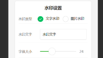一个纯前端的微信小程序图片水印工具。支持文字/图片水印、单个与全屏两种模式,透明度与角度调节、单个水印位置 X/Y 控制,预览与对比模态、历史记录(100 条)等功能。
