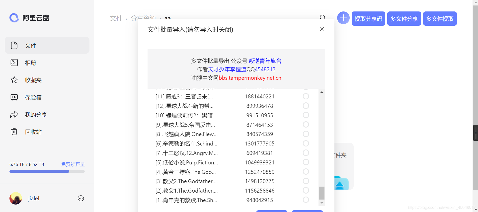 工具:谷歌浏览器,油猴插件。1. 安装油猴插件下载文件(https://lijiale.lanzoui.com/iTbAWoaxihc)打开插件伴侣,选择Tampermonkey_v4.5.crx文件安装插件,点击开始安装(需要关闭谷歌浏览器后安装)。2. 安装阿里秒传脚本脚本链接(https://bbs.tampermonkey.net.cn/thread-427-1-1.html)点击安装此脚
