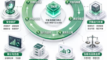 摘要:AI Agent正在从“会回答问题”的工具,进入“能理解目标、调用工具、执行流程”的阶段。在这个过程中,Skill不再只是提示词、脚本或接口封装,而是承载企业知识、流程经验和操作权限的认知资产。本文围绕Skill的定义、治理目标、标准架构、风险识别与落地路径,整理出一套面向企业的全生命周期治理框架:先把资产看清,再把权限管住,再把运行过程审计下来,最终让Skill从可用走向可信、可复用和可持