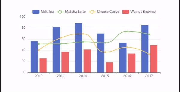 非常简洁漂亮的天气效果, echarts中使用到了xAxis.axisLabel. rich, 效果很满意, 只展示了静态代码, 保存为html后就可以直接运行rich负责定义模板, formatter负责输出格式化后的数据, xAxis第一组position为top, 顶部展示日期和天气图标, 另一组position为bottom, 位于底部展示星期