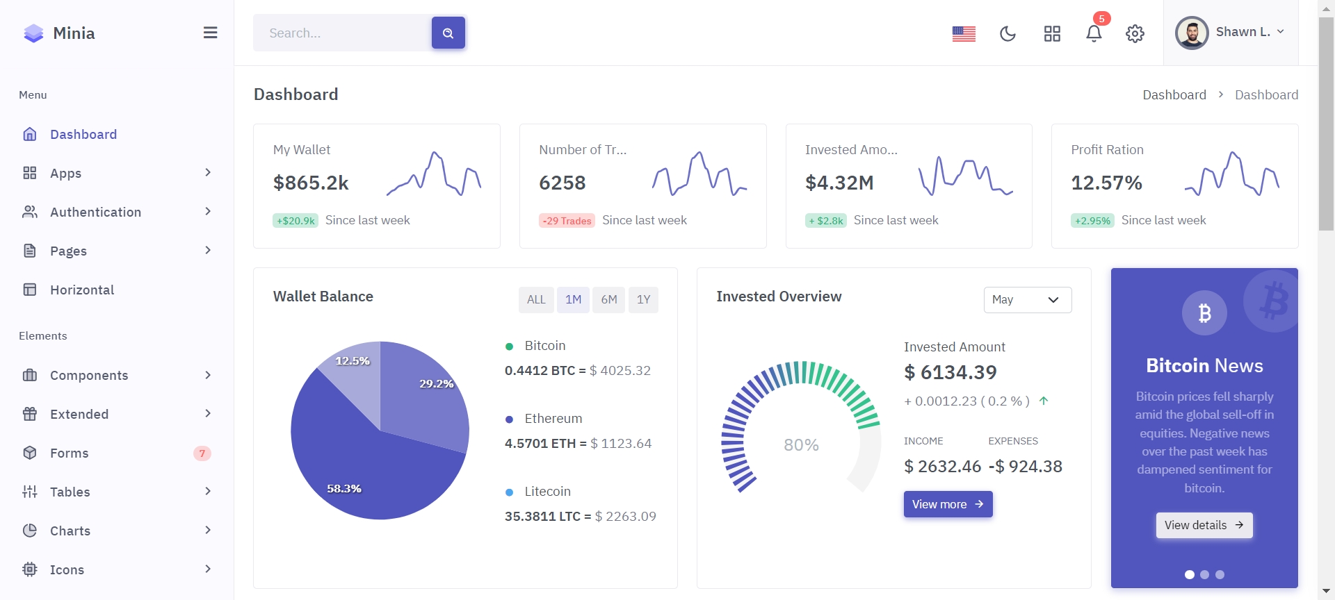 Minia是简单而美观的管理,使用Bootstrap 5。模板有6+不同的布局和3种模式(深色、浅色和 RTL),由SCSS管理样式代码。您可以通过更改几行代码简单地更改任何布局或模式。可以使用这套开始小型和大型项目或更新现有项目中的设计,非常快速和简单,并提供最终的用户体验。可以创建任何网站的后台数据管理,或者WEB应用系统的界面,网站界面。