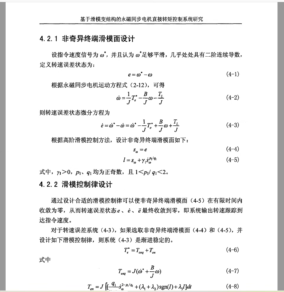基于非奇异终端滑模直接转矩控制的永磁同步电机控制【提供参考论文】若需提供模型问题咨询,也可不限于模型问题,可进行合理范围的修改,有偿~可提供模型定制服务~一、算法简介采用非奇异终端滑模控制器代替原有的滑膜直接转矩控制中的PI控制器,提高控制的鲁棒性。非奇异终端滑模控制策略作为滑模变结构控制方法中的一种,不仅解决了线性滑模控制的系统状态无法在有限时间内收敛的不足,且避免了终端滑模的奇异问题。二、图片