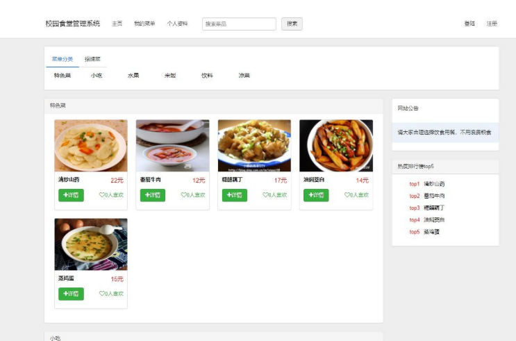 主要功能是学生用户可以根据分类选餐,在线预定生成订单,然后再根据叫号来取餐,管理员则是对菜品,菜品分类,用户订单,员工信息等功能进行管理。