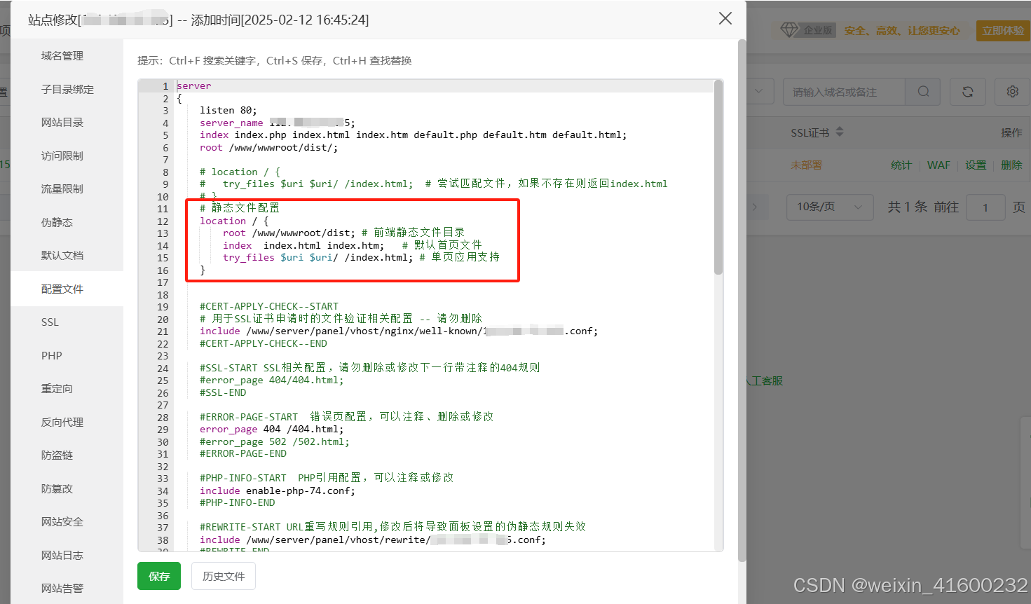 下载nginx源码编译之后,在/usr/local/nginx/nginx.conf配置站点信息。在nginx上配置了站点与api代理。