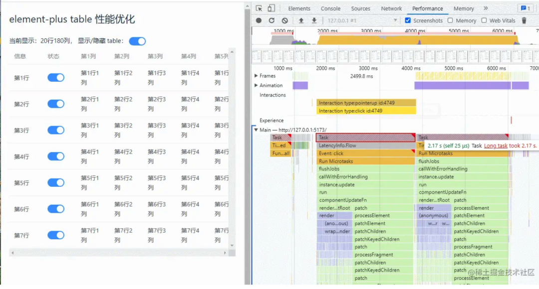 elementui里的table表格组件在面对大数据量的时候渲染会出现严重的性能卡顿问题