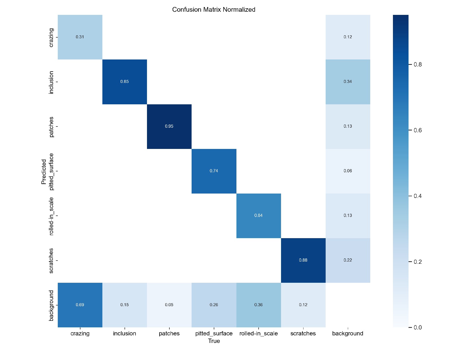DL00612-基于YOLOv8的钢材表面缺陷检测含数据集处理东北大学(NEU)表面缺陷数据集,收集了热轧带钢6种典型的表面缺陷,即轧内垢(RS)、斑块(Pa)、裂纹(Cr)、点蚀面(PS)、夹杂物(In)和划痕(Sc)。该数据库包括1800张灰度图像:6种不同类型的典型表面缺陷各300个样本。6种典型表面缺陷的样本图像,每张图像的原始分辨率为200×200像素。从图中,我们可以清楚地观察到类内缺