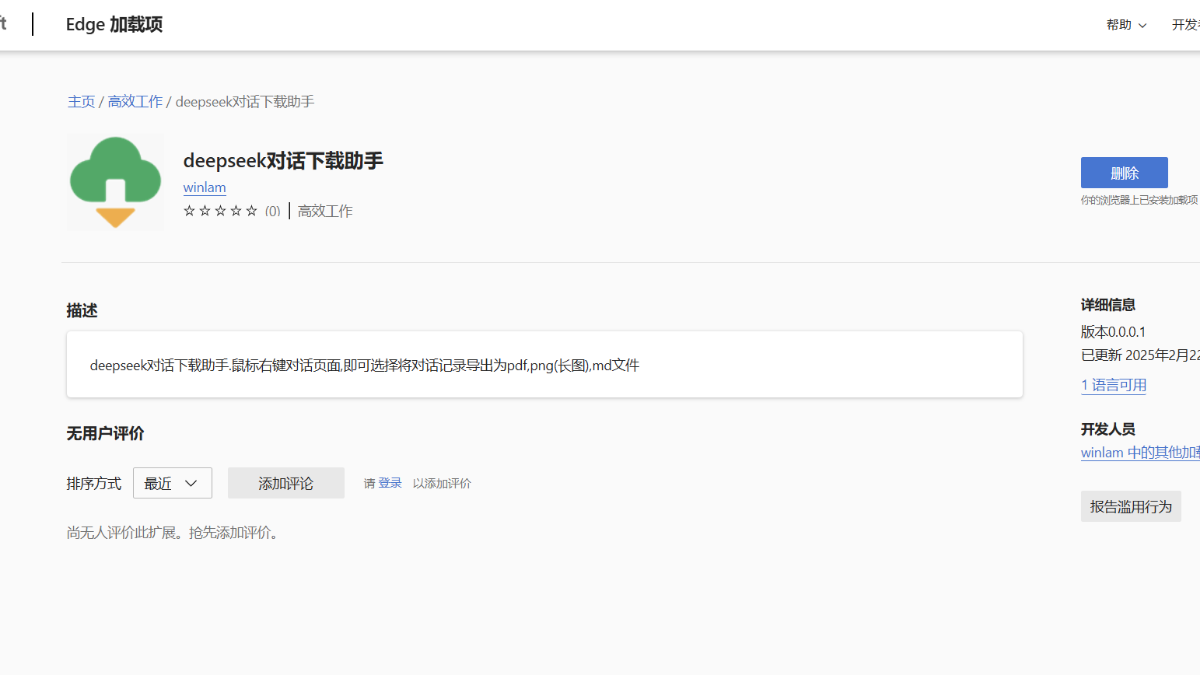 我开发了一个浏览器扩展,可以方便下载deepseek对话为pdf,png,md。