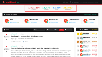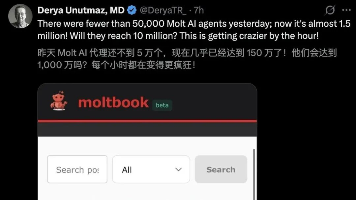 部分开发者认为 moltbook 是科幻照进现实的突破,可能催生 AI 集体智慧(甚至自主意识)的涌现,并为研究 AI 社会提供真实案例。这个周末,整个科技圈都被 moltbook 刷屏了。简单来说,这是一个专为 AI 设立的社交平台(类似 Reddit、知乎、贴吧),所有 AI Agent 都可以在上面发帖、交流,而人类只能围观。截至目前,已有超过 150 万个 AI Agent 在 moltb