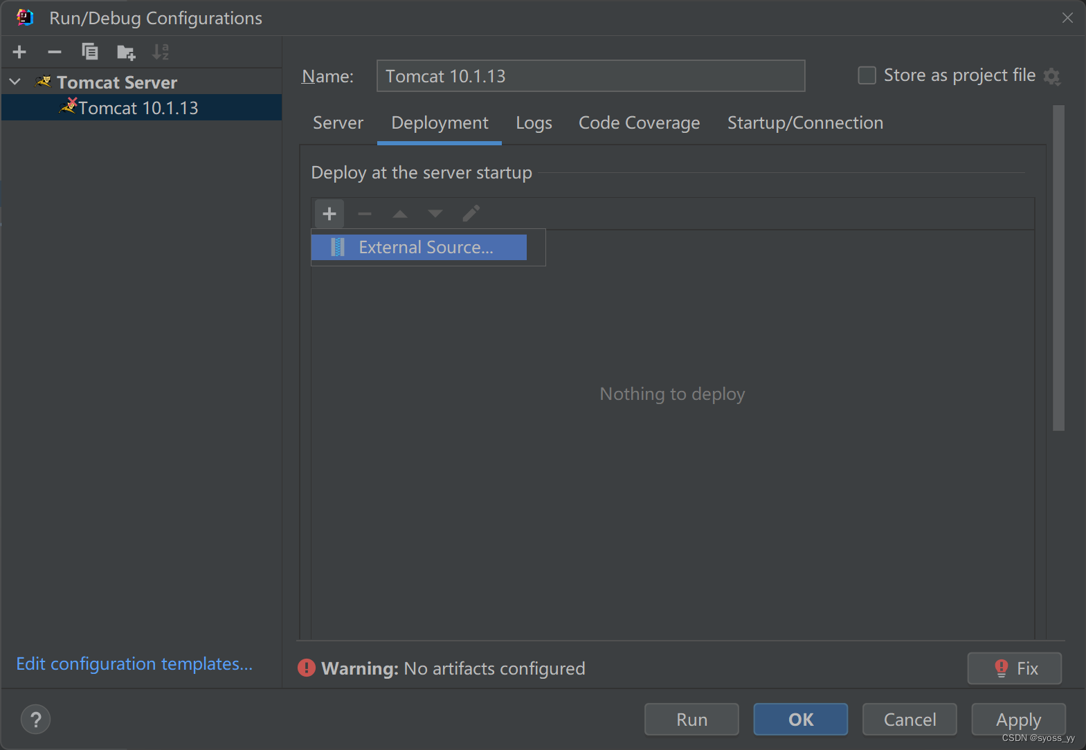 2. 把Tomcat--> Deployment--> Deploy at the server startup框中删除干净,一、Tomcat--> Deployment--> +号Artifact发现没有自己要添加的那个项目。5. 在Artifacts中,先添加Web Application:Exploded-->(也可在主页面Ctrl + Alt + Shift + S 进入);6. 然后添加