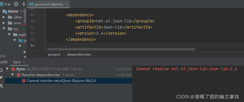 在pom.xml错误实例:<dependency><groupId>net.sf.json-lib</groupId><artifactId>json-lib</artifactId><version>2.4</version></dependency>正确做法:<!-- JSONObject对象