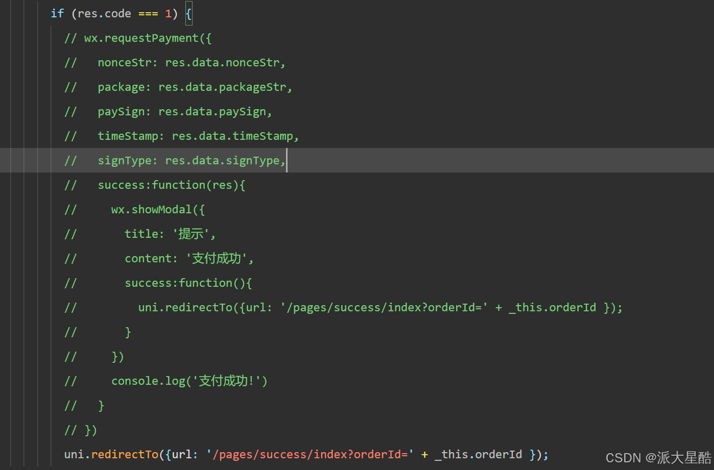 在苍穹外卖项目中,由于个人账号在微信支付功能无法获取商户号,可选择。2. OrderServiceImpl中的paySuccess方法可以不修改。3.如果语音播报一直循环 记得修改task包里的WebSocketTask。在pages/pay/index.js中220行左右。1. 修改OrderServiceImpl中的payment方法。,代码编写需要在老师编写的代码基础上进行修改去实现。从而实