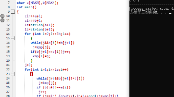 题目要求实现KMP算法,解决字符串匹配问题并计算模式串各前缀的最长border长度。输入两个字符串s1和s2,输出s2在s1中的所有匹配位置(从小到大),以及s2各前缀的最长border长度。示例中,输入"ABABABC"和"ABA",输出匹配位置1和3,以及border长度0 0 1。C++代码通过预处理模式串的kmp数组实现高效匹配,时间复杂度为O(n+