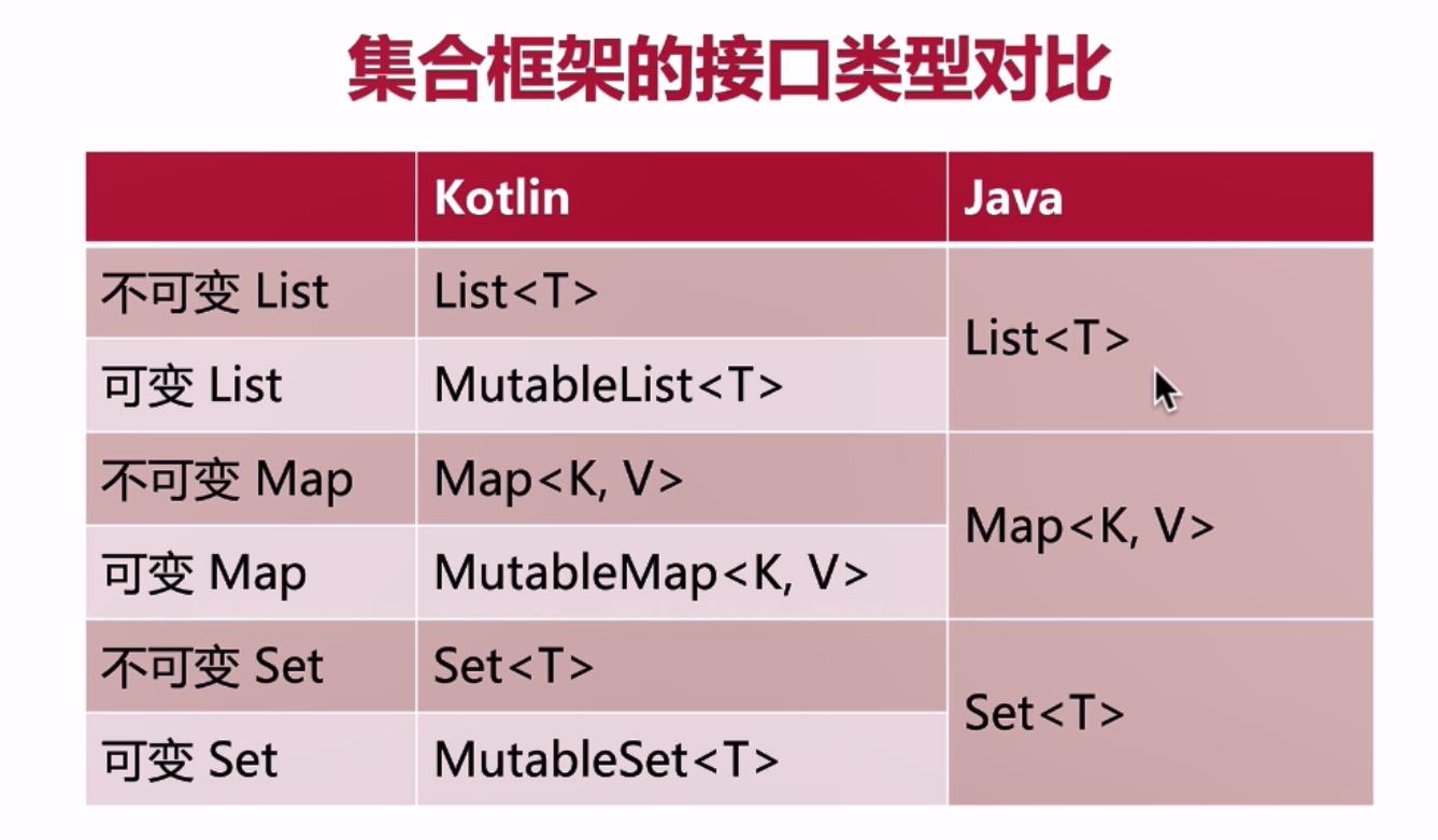 Java中的数组的类型 T[](long[],int[]…}),而在Kotlin中,直接用Array类型表示数组,比如我们构造一个int数组,5个元素,每个元素的初始值为 i*i:val squareArray = Array(5, {i -> i * i})014916Kotlin中对Java中8个基本类型数组用了 新的 xxxArray来定义。(比如 BooleanArray、ByteArra