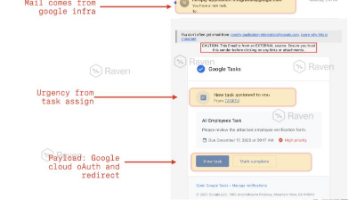攻击者通过Google Tasks通知及Application Integration服务,从合法发件地址mailto:noreply-application-integration@google.com发送高度仿真的任务提醒邮件,诱导用户点击内嵌链接访问托管于Google Cloud Storage的伪造登录页面,从而窃取企业账户凭证与多因素认证(MFA)令牌。因此,防御框架需具备平台无关性,核