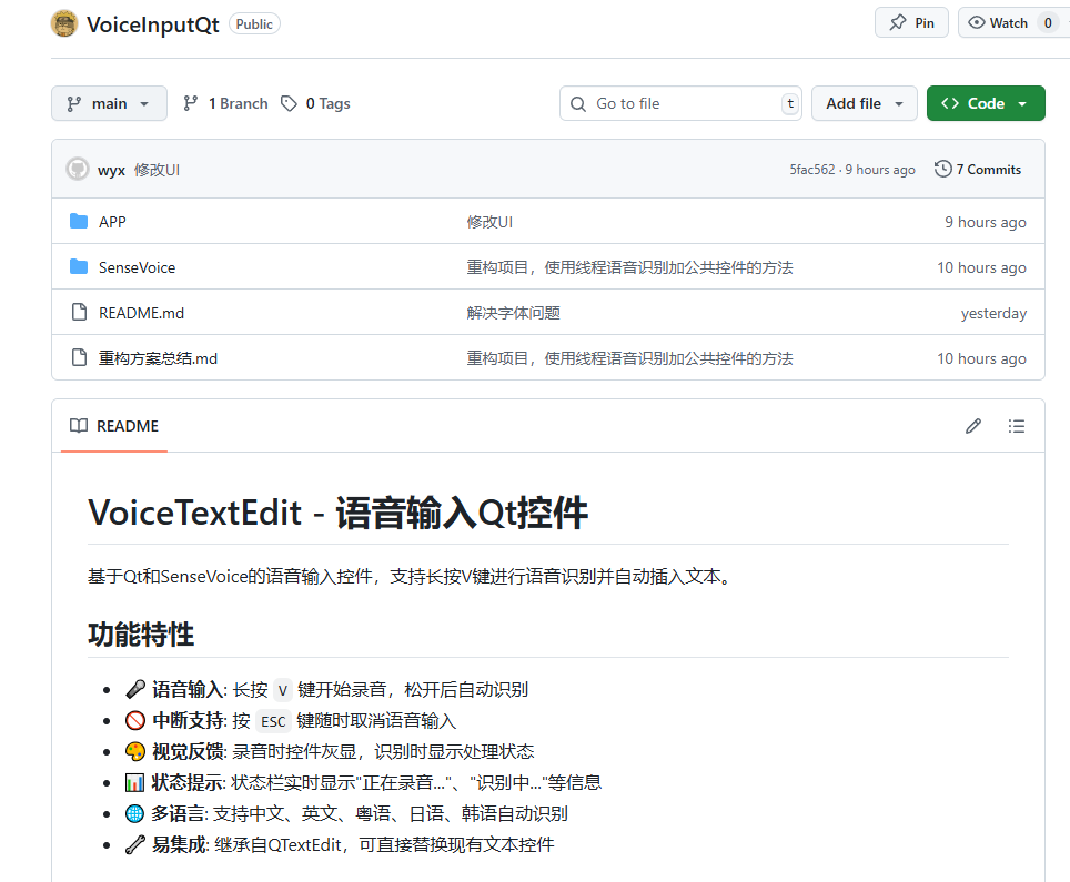 基于SenseVoice和QT的AI语音录入软件,支持本地部署。