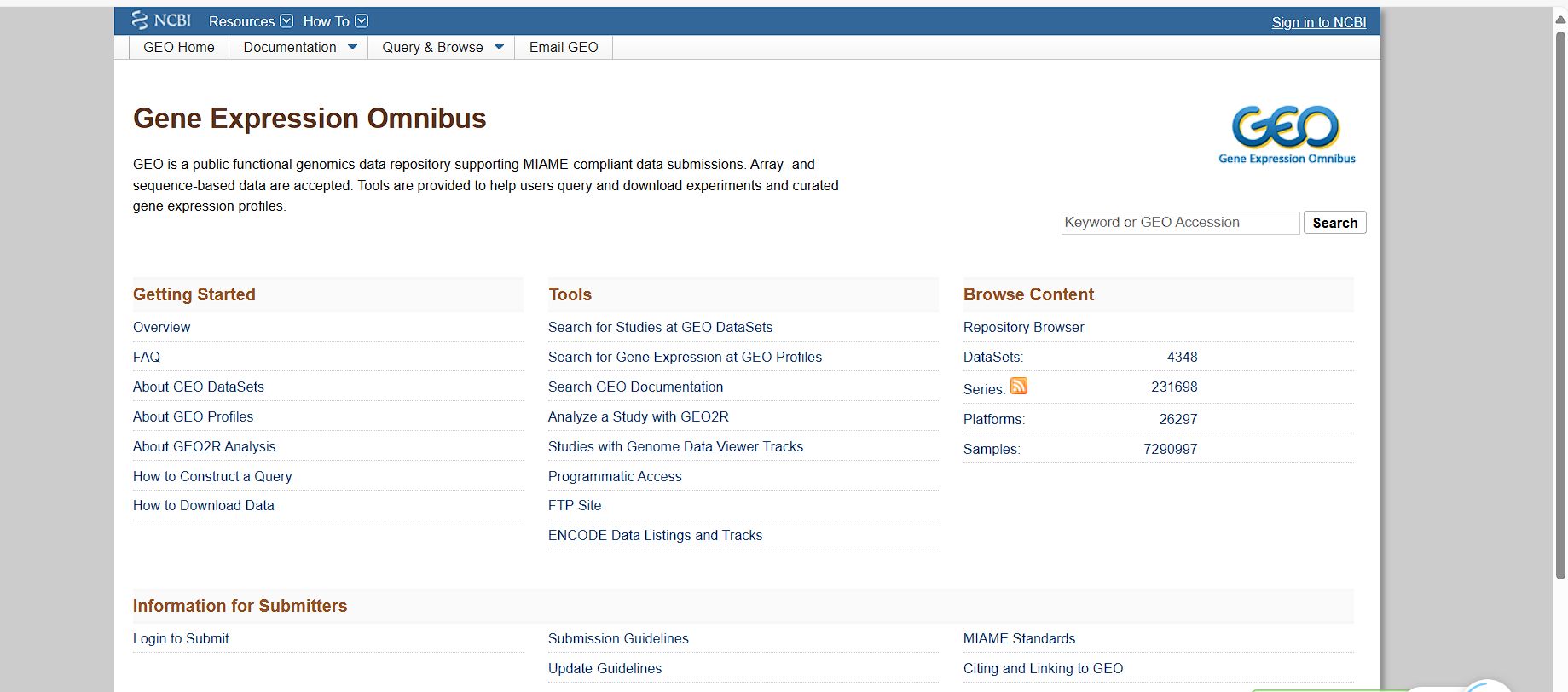 NCBI GEO数据库(Gene Expression Omnibus)是一个全球最大的生物医学领域的公共数据库平台,用于存储基因组学数据,包括基因表达数据、染色质状态和基因组变异等。研究人员可以在该平台上查找、下载和分析各种基因表达数据集,以便进行生物信息学和生物医学研究。NCBI GEO数据库提供了丰富的数据资源和分析工具,是生命科学领域的重要研究工具之一。大量生物医学领域发表的论文使用的公共