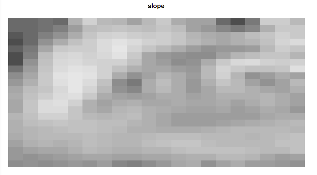 #生成slope在总体样地中的变化情况 #灰度图library(mvpart)library(rpart)library(MVPARTwrap)library(permute)library(lattice)library(vegan)setwd("D:/R/mvpart")habitat <- read.csv("mvpart.csv")slope <- habitat$slopes
