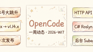 OpenCode本周迎来重大版本跃升(v1.4.x→v1.14.x),共发布8个版本,主要亮点包括:新增NVIDIA provider支持、C# Roslyn语言服务升级、会话压缩优化、HTTP API功能扩展(MCP状态查询/文件读写)。同时修复了DeepSeek思维链模式、ripgrep文件搜索等关键问题,并提交了后台subagent支持PR。版本迭代速度创纪录,平均每天超过1个版本,显示项目