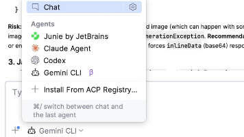 生产环境使用建议先在小项目试水,别一上来就让它重构核心模块(血泪教训预警⚠️)。以前你得:切终端 → 打开 Gemini CLI → 复制代码 → 粘贴 → 等回复 → 再切回 IDEA。的魔法:让外部 AI 代理(比如 Gemini CLI)直接"住进"你的 IDE,无缝协作。(Mac/Linux)或用管理员身份运行终端(Windows)。,它就能看懂你的项目、帮你改代码、甚至跑终端命令!⚠️