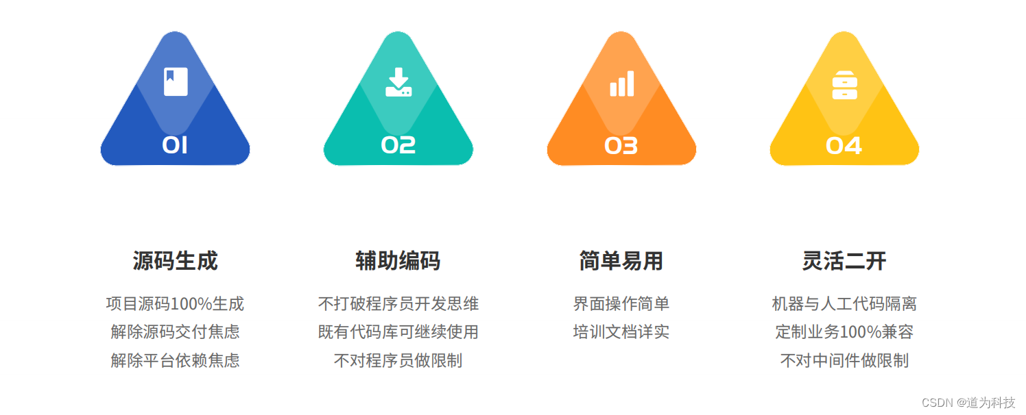 chatgpt出来时,很多人认为chatgpt或者其他一些大模型会取代低代码,甚至会取代程序员,我想说大模型与低代码和程序员是共存共融的,各自发挥擅长的领域,最终还都是工具,为开发者服务的,使用工具的目的是追求效率的最大化,并保有开发的自由度。(2)低代码开发平台也会有零代码那样的拖拉拽,还可以对业务逻辑进行拖拽,同时具备一定的二开能力,他面向的是专业的IT人员,优点是技术封装度较高,缺点是对于研